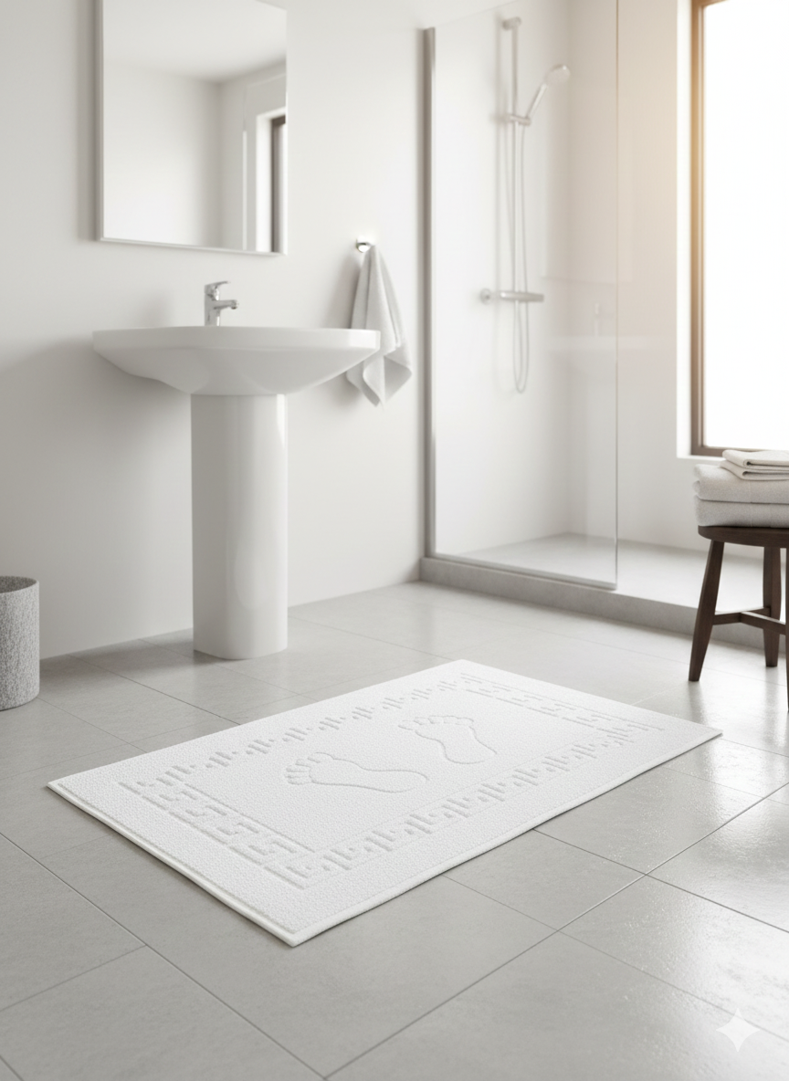 Beyaz Ayak Havlusu Paspas %100 Pamuk 50x70 Cm , Yüksek Gramajlı
