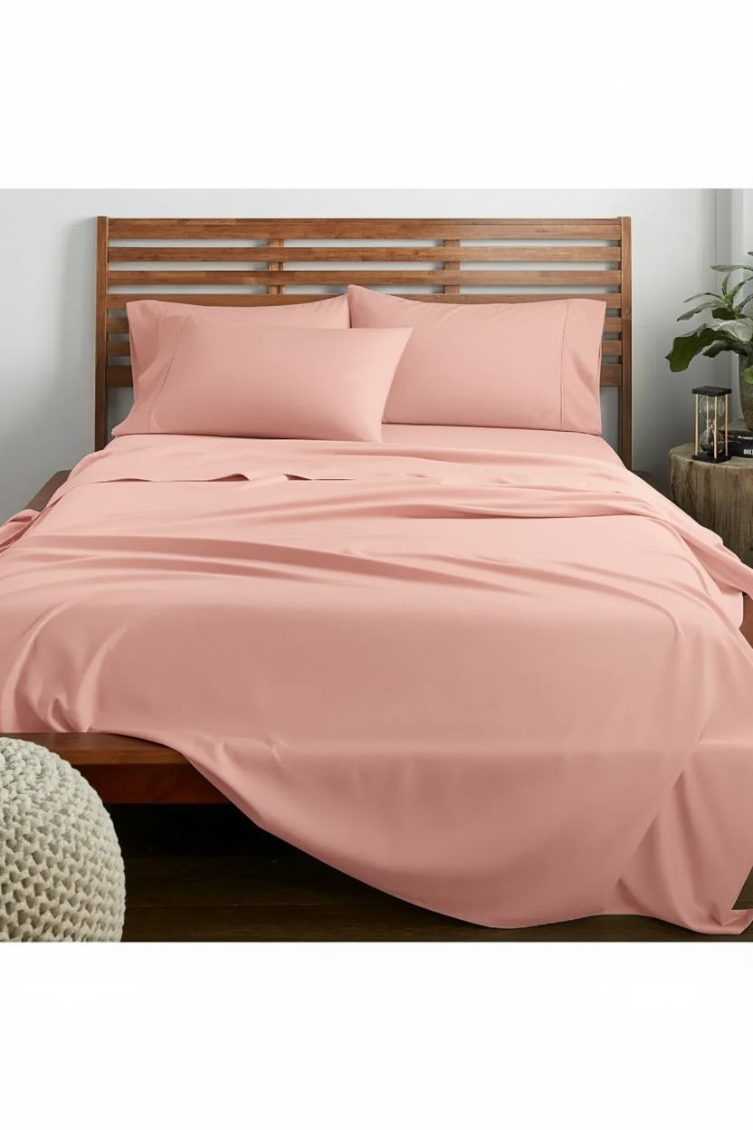 Pamuklu Nevresim Takımı Lastikli Çarşaflar Tek ve Çift Kişilik Seçenekli Pembe