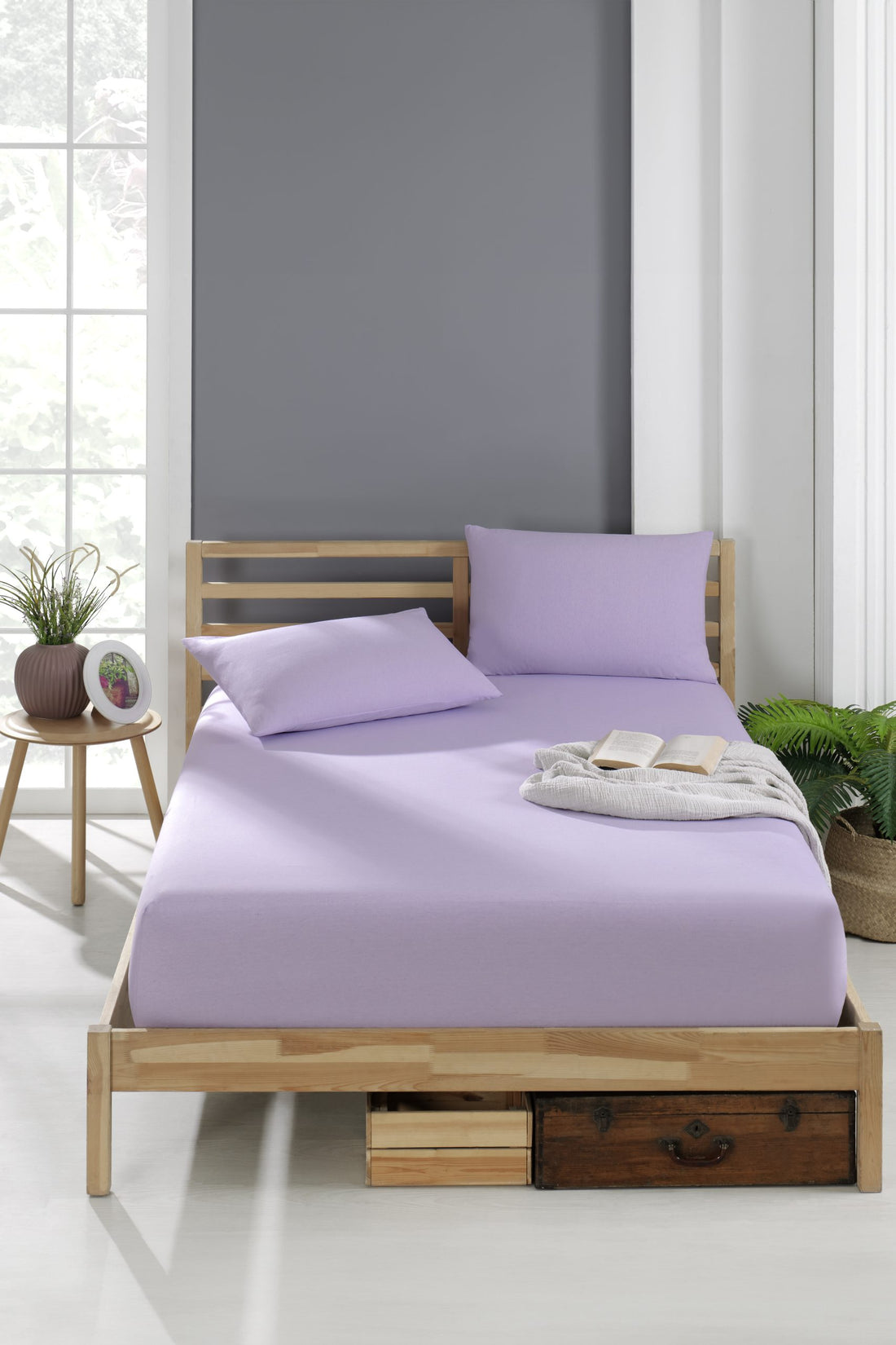 Pamuklu Ranforce Kumaş Lastikli Fitted Yastıklı Çarşaf Seti Lila (5 Ebat)