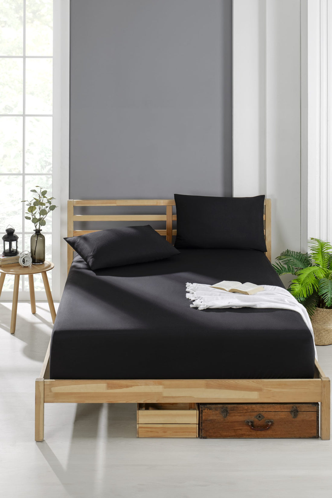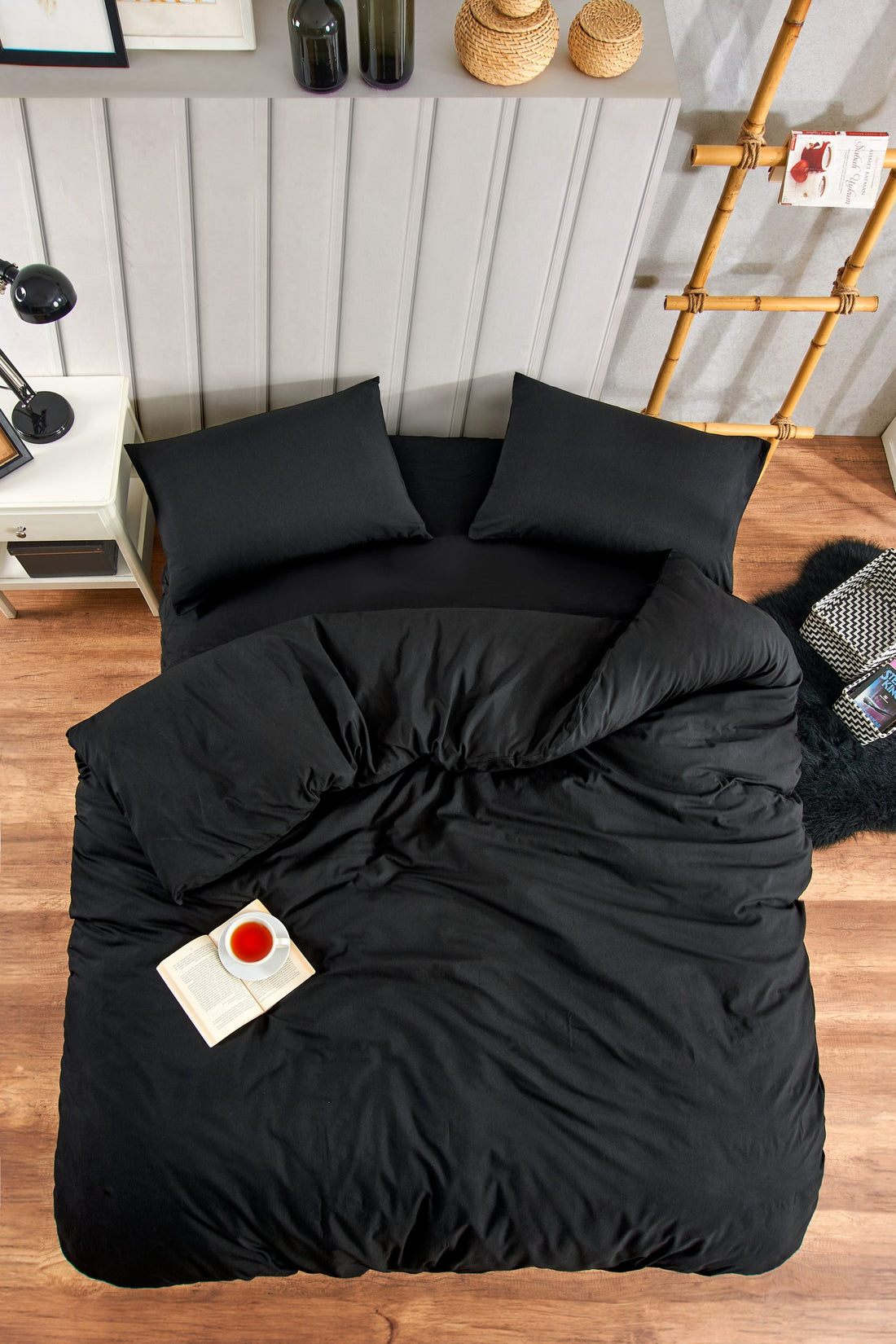 Pamuklu Nevresim Takımı Lastikli Çarşaflar Tek ve Çift Kişilik Seçenekli Siyah