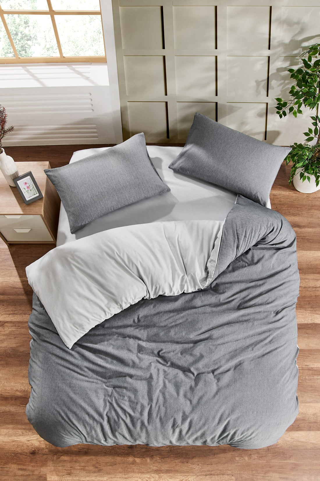 Pamuklu Nevresim Takımı Lastikli Çarşaflar Tek ve Çift Kişilik Seçenekli Gri Antrasit