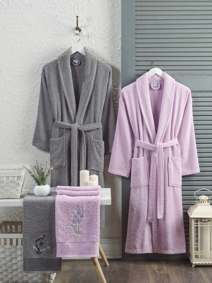 Antrasit Lavanta Havlulu Bornoz 4'Lü Set