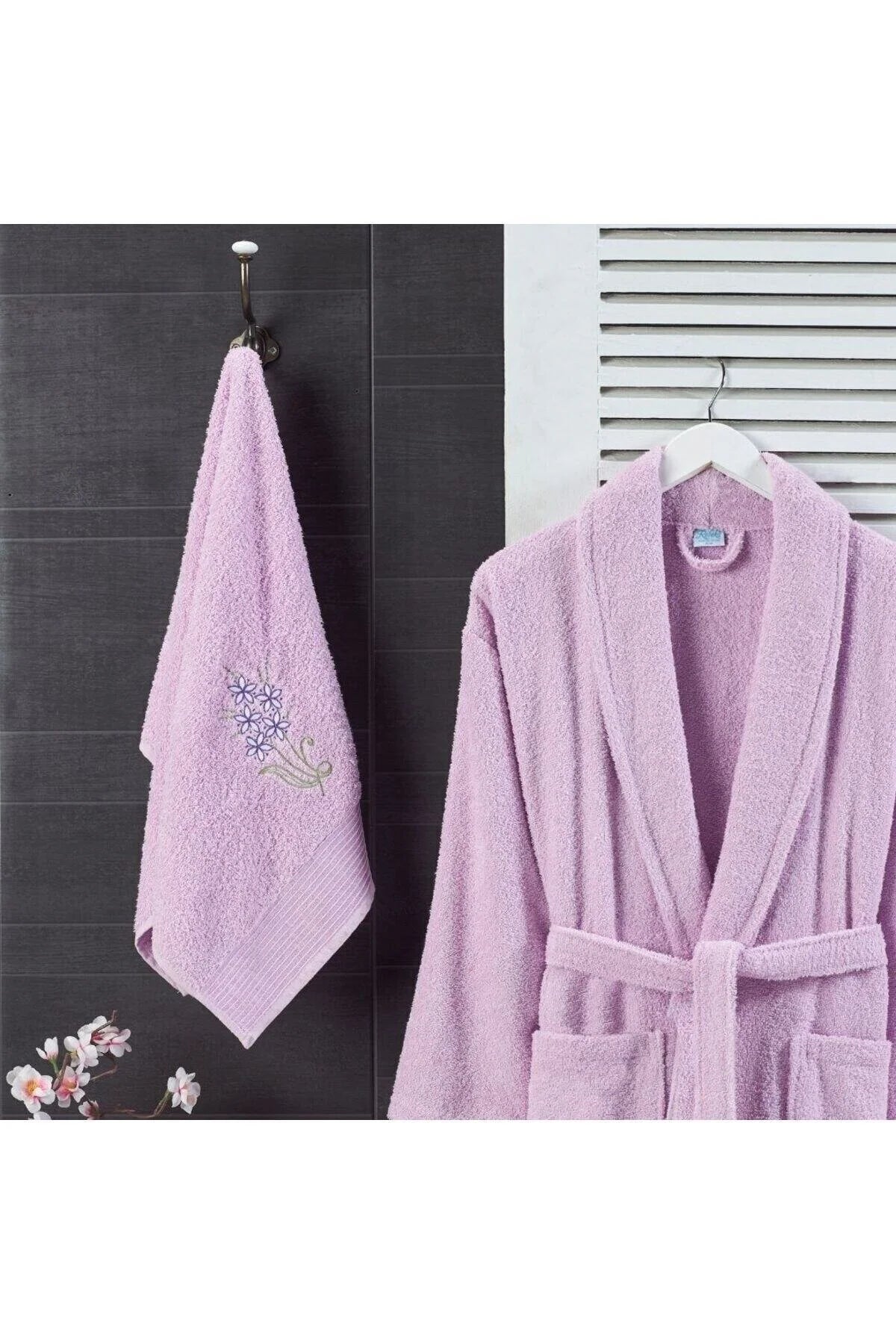 Antrasit Leylak Havlulu Bornoz 4'Lü Set