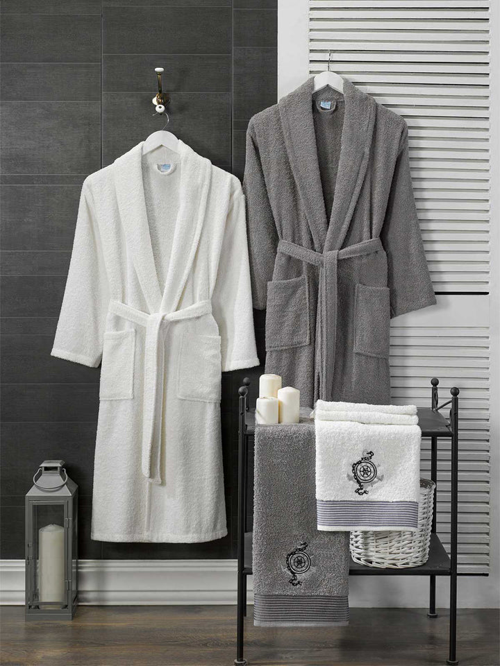 Krem Antrasit Havlulu Bornoz 4'Lü Set