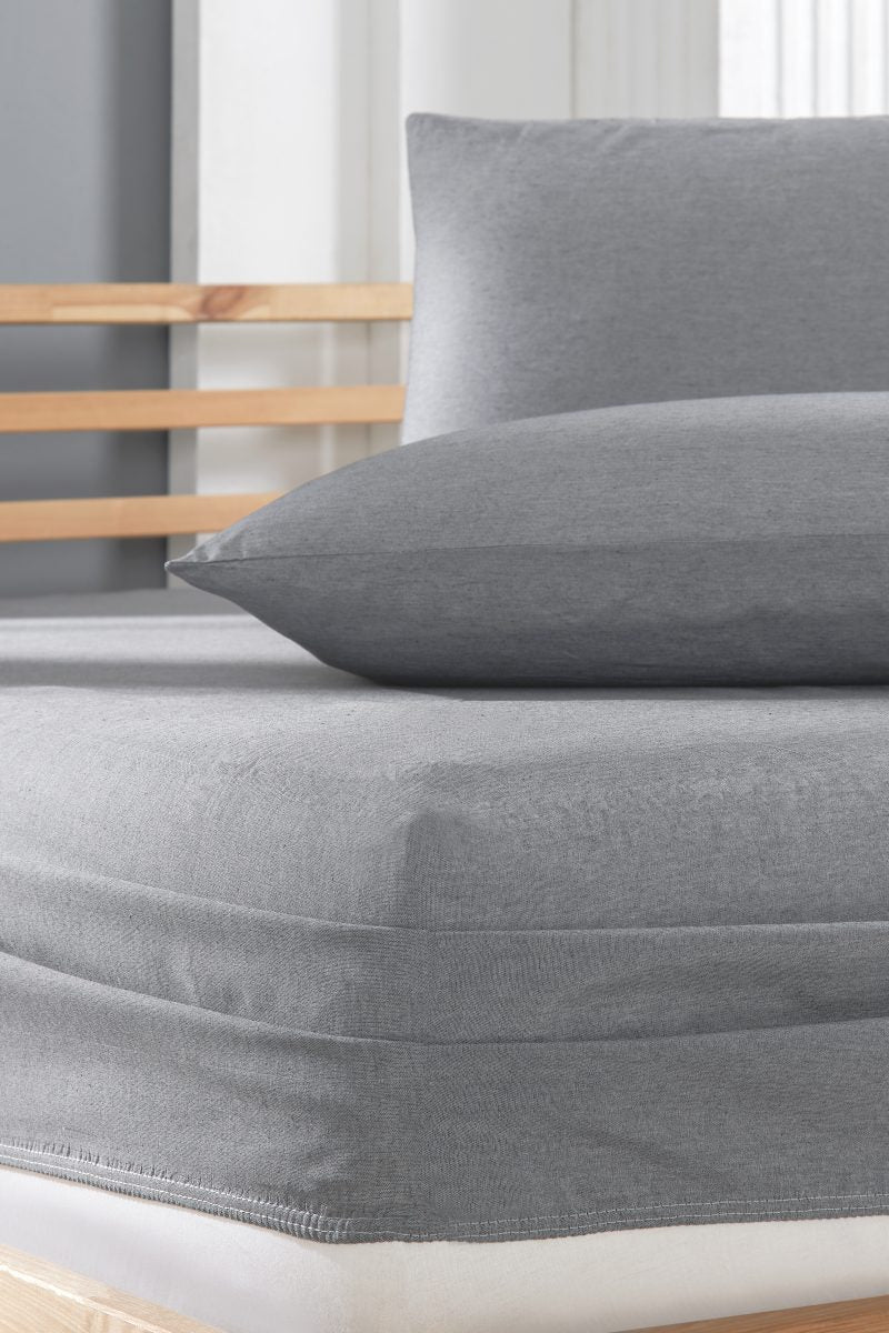 Pamuklu Ranforce Kumaş Lastikli Fitted Yastıklı Çarşaf Seti Antrasit (5 Ebat)