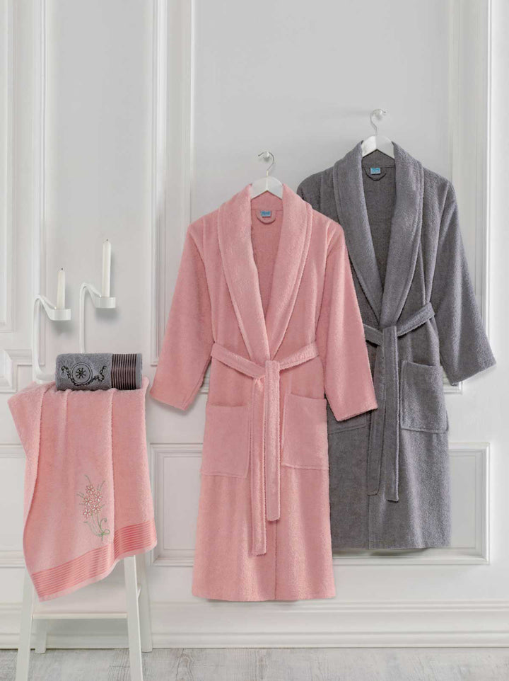 Pudra Antrasit Havlulu Bornoz 4'Lü Set