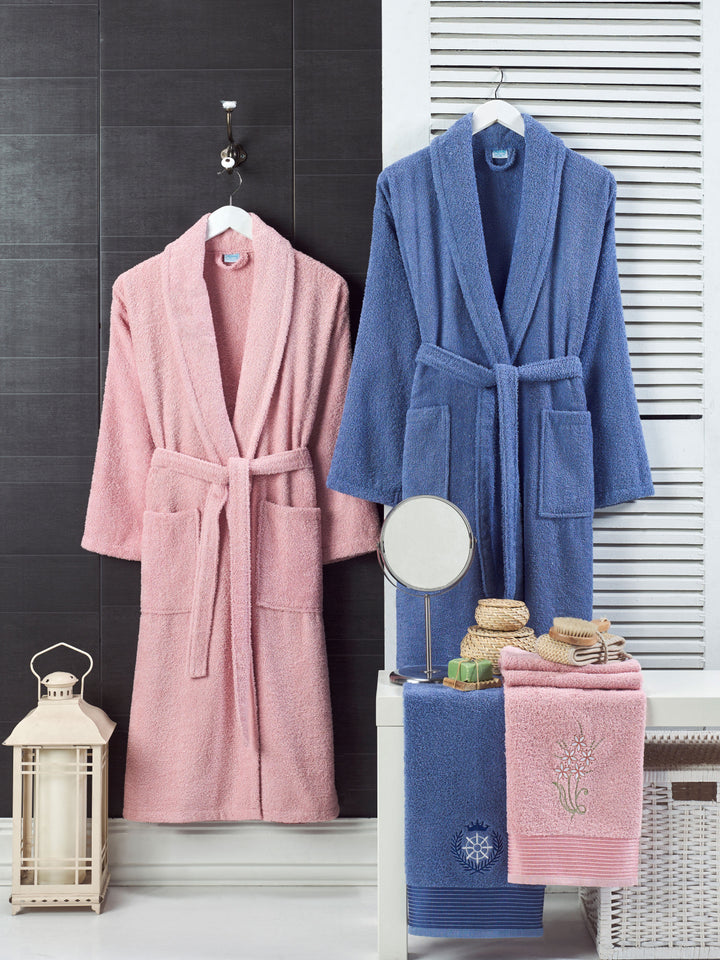 Bornoz setimiz, %70 Pamuk %30 Polyester yüksek kaliteli malzemelerden üretilmiştir ve konforu ön planda tutar. Set içinde iki adet bornoz ve iki adet 50x90 cm havlu bulunmaktadır. İşte detaylar: